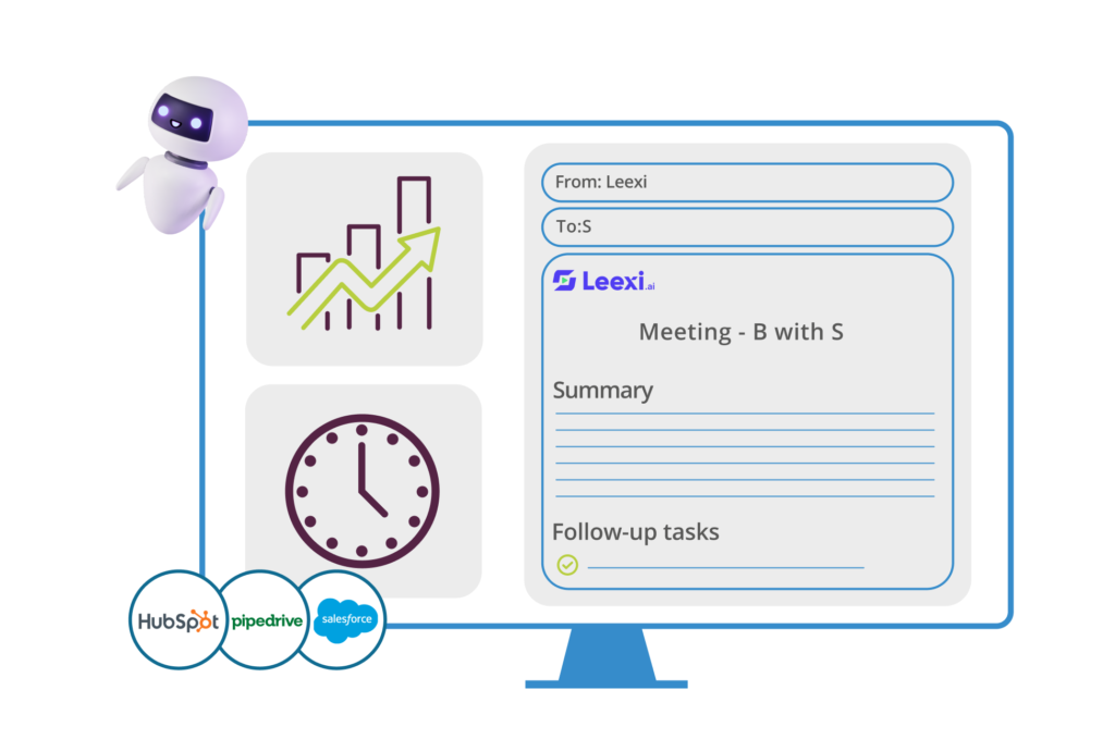 Here’s how Leexi leverages AI to enhance your meeting experience. By seamlessly integrating with your video conferencing platform, Leexi’s AI notetaker assistant automatically joins your meetings, enabling hands-free note-taking. This allows you to stay fully engaged in your client conversations while Leexi records and transcribes everything for you, ensuring nothing is missed.